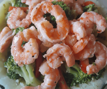 Batata cozida, camarão frito na manteiga, brocólis salteado, queijo muçarela e orégano.