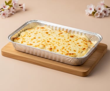 Purê de batata, frango desfiado com temperos frescos, requeijão e muçarela.